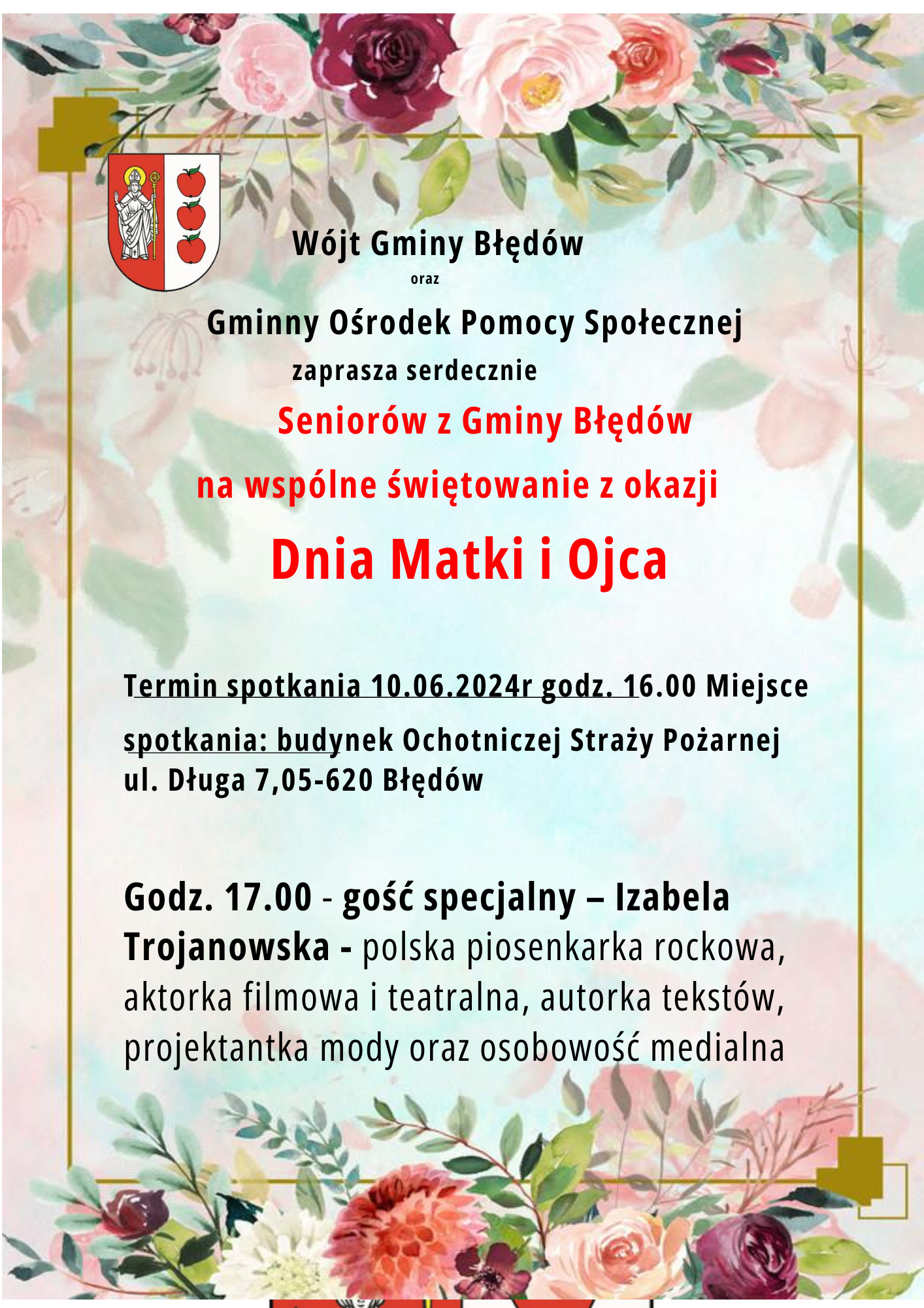Zaproszenie dla Seniorów z okazji Dnia Matki i Ojca